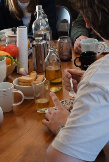 Une cuisine simple et naturelle, pensée pour l’énergie du groupe.